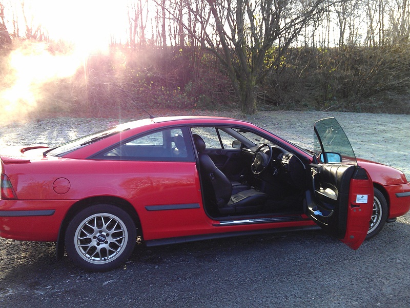 I used to own the SE1 Calibra on the right, but sold it to help fund the purchase of the red 16V automatic on the left. By sheer coincidence a few weeks later, I arrived at a car park where there was only one empty space left - next to the Calibra SE1 I used to own! So, I took this picture - of the first two Calibras I have owned. Since then I bought my third Calibra, an R-reg titanium 2.5 V6 automatic, but as I couldn't bear to sell the red one, I now run two Calibras.