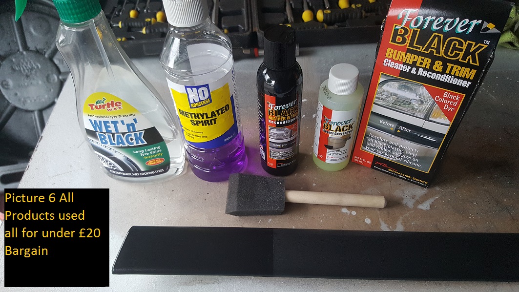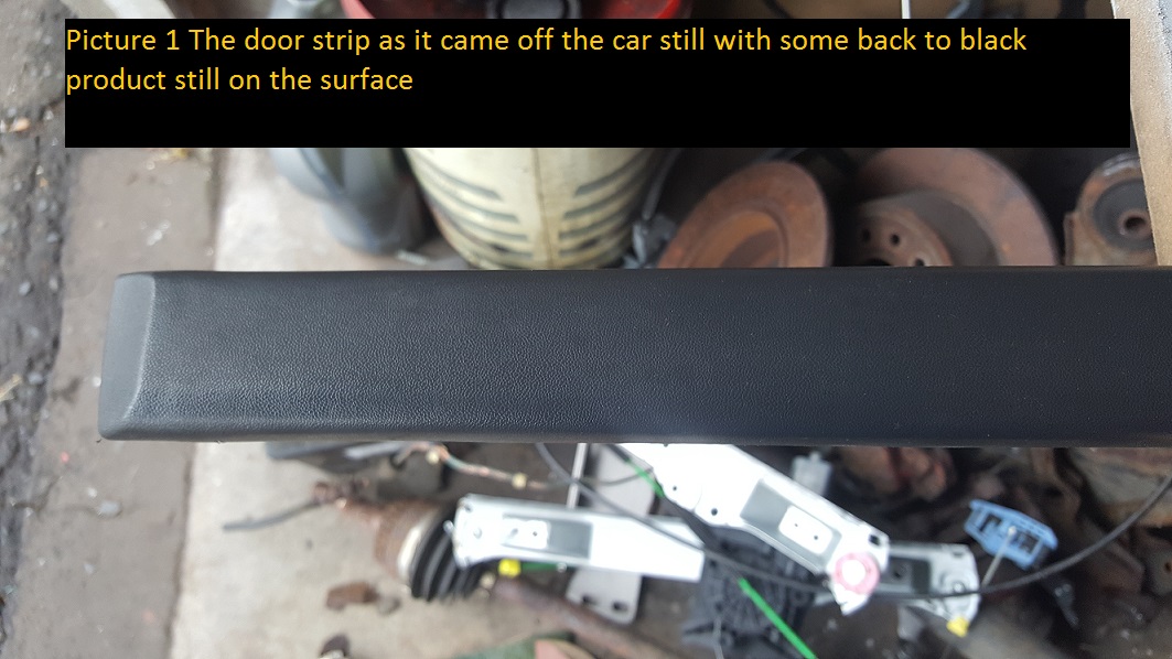 I thought i would do some product testing with Forever Black trim dye i have seen this product advertised for a while now and thought will it really work so after reading some reviews from customers in the USA the country from which this product is made and watching some YouTube video's i took a gamble and bought some on eBay and sought about testing it now my personal rating of this product is that it is worth every penny of the £15 for the kit i will post pictures of the car when i do it but this is how i got on with a test piece of door trim from my 1994 Calibra