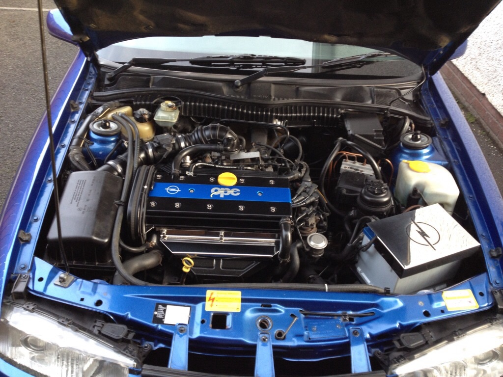 Before being put back on the road it got new brake pipes front to back, new discs and pads, full exhaust front to back, new springs, timing belt kit and water pump, most of the sensors replaced in the engine, new thermostat, full service, new tail light, full dent removal done prior to paint, new upper weather strips on both sides, sunroof stripped out and repaired, tow bar removed, new clutch, plugs and leads, zender front apron, new wheels, interior stripped out and cleaned, front end re spray along with lower half of drivers side bodywork and rear bumper, full opel outside conversion, engine bay tidy up and some parts painted.