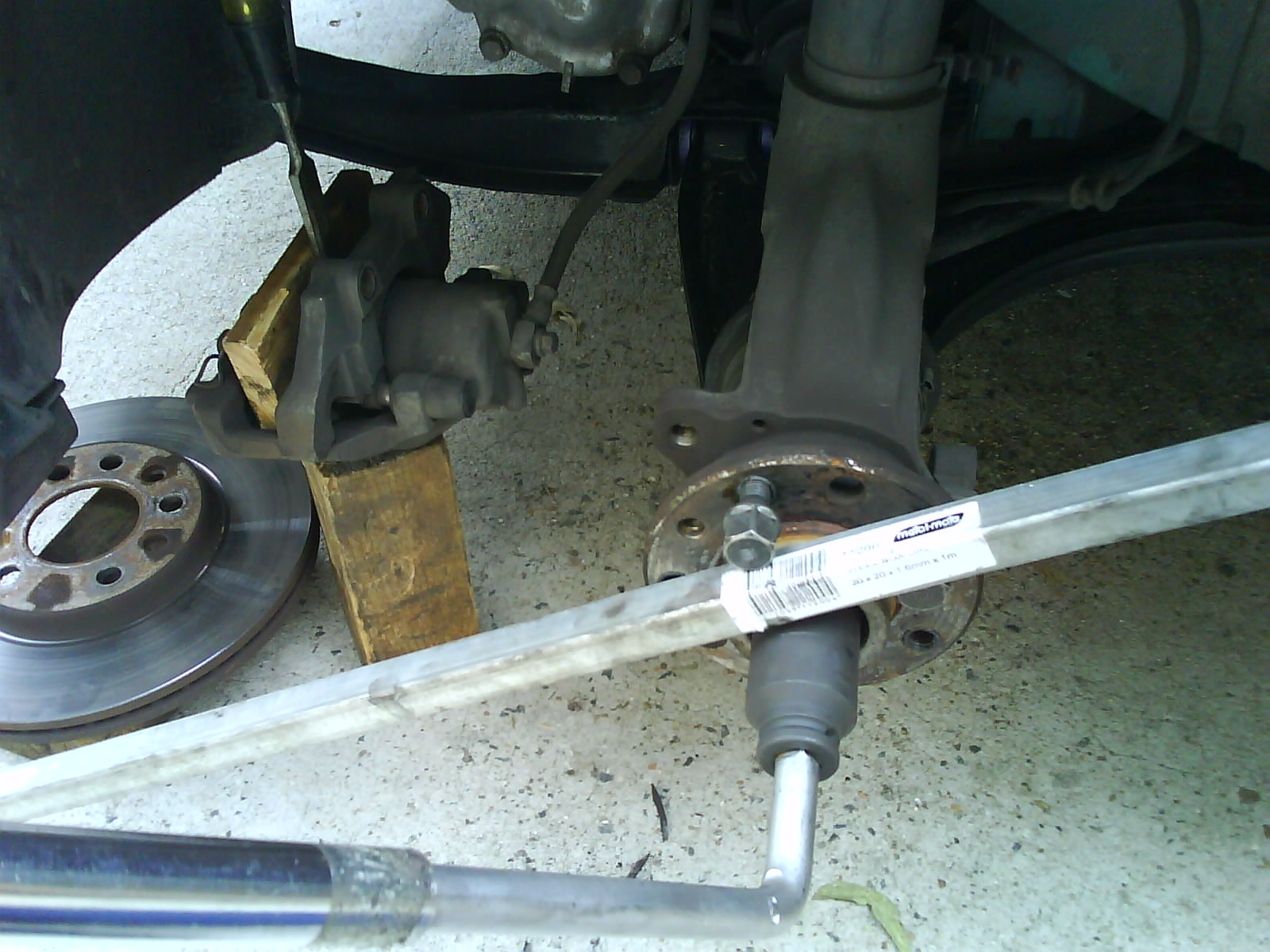 Just a note, the castellated nut is an absolute pain in the *** to get off and refit as you need a ton of leverage and force to undo and redo the nut, that why I showed the picture so you could actually see how I set up to undo the nut in case you wish to try it. I'd follow the haynes manual it is a straight forward job to do otherwise.