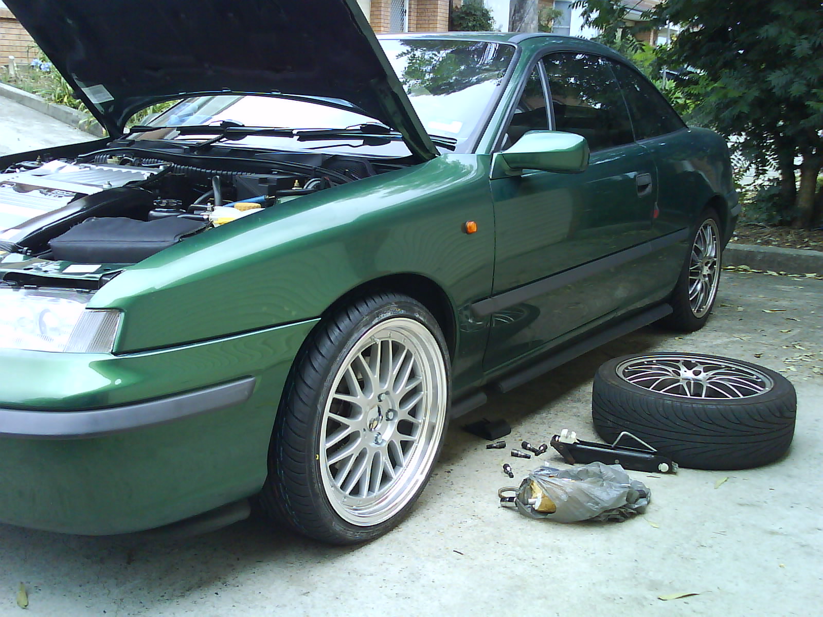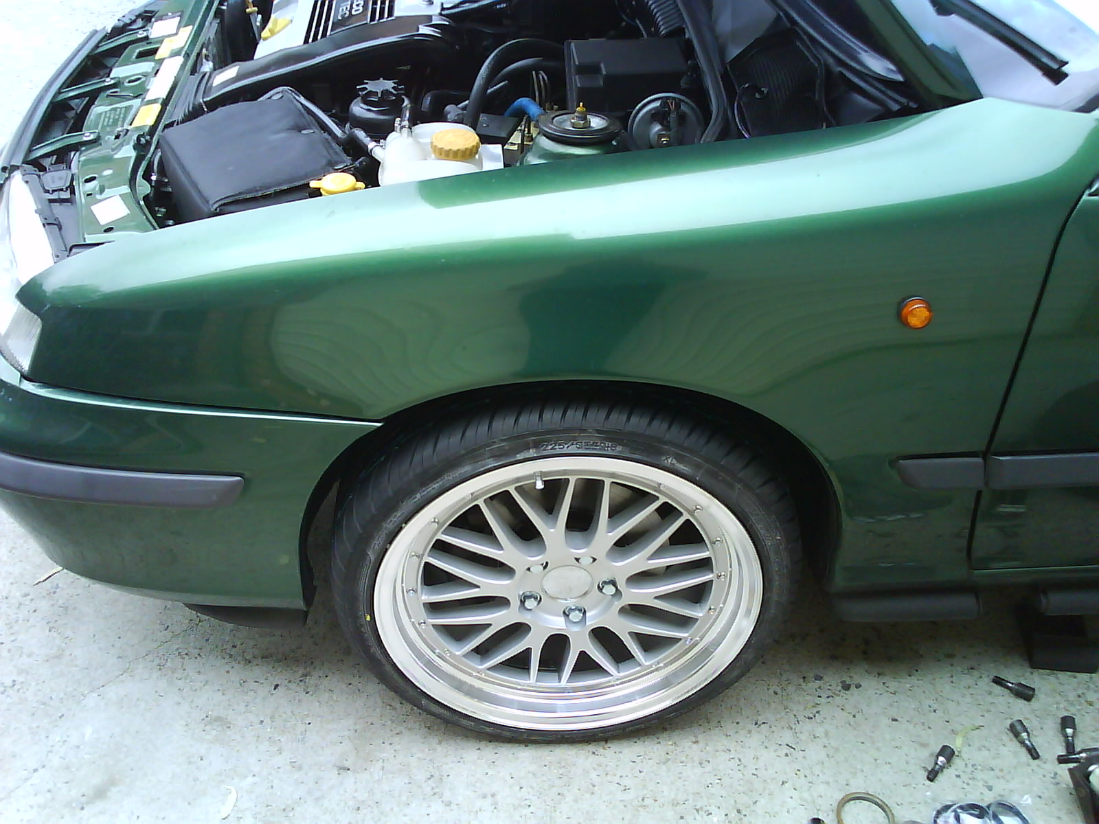 Below are some photos of the test fitting of my new tyre and wheel combo. I wanted to see how they looked and get an idea about how much rolling & pumping of the guards I'll need to do. As a note, the tyres are 225/35/18 and the rims ET is 47, and there is plenty of clearance behind the wheel, at least 10mm, and between the wheel and arch, at least 40mm, and that's with eibach springs fitted.