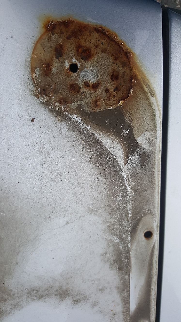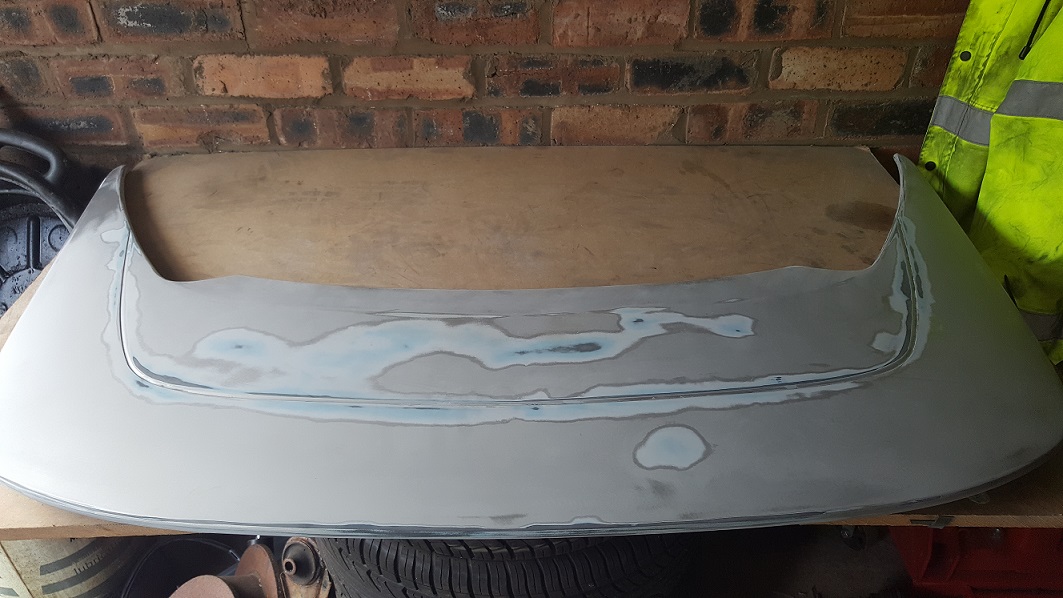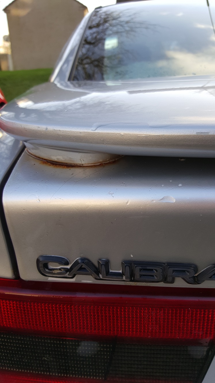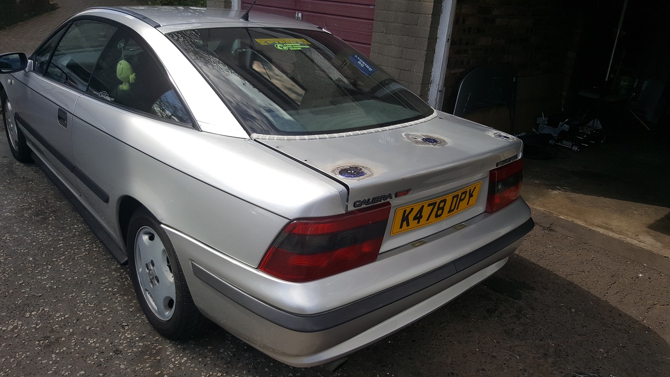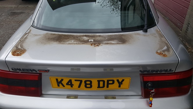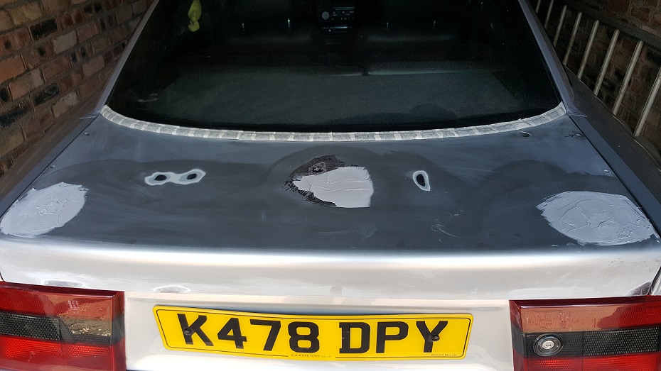 Started to tackle rust on my silver cally today took the spoiler off to find big pitted rust patches oh dear worse than i thought so got stuck in grinding ,buffing and treating the rust with krust i am almost ready to fill all the holes and have no spoiler as i think it would suit not having one