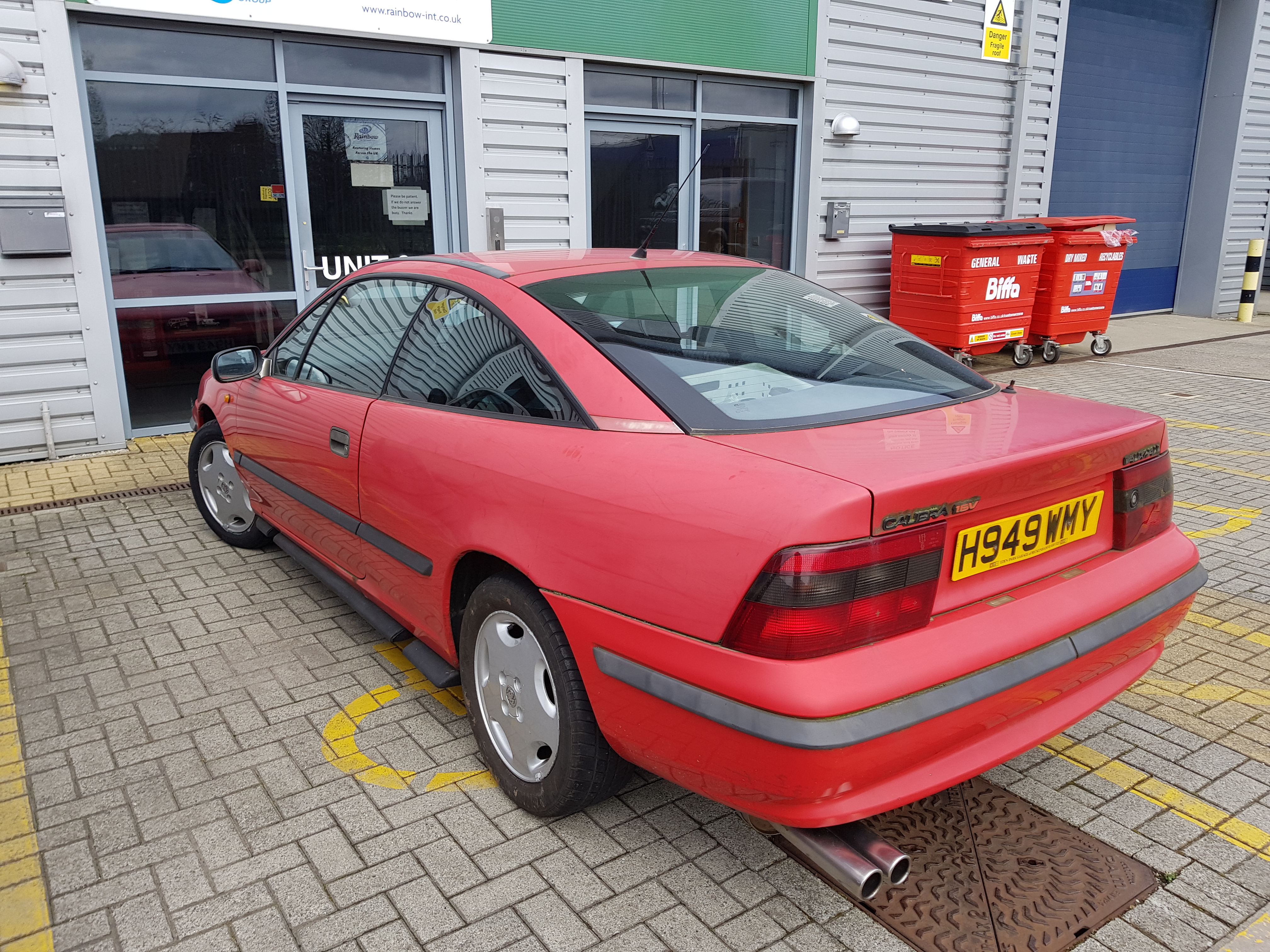 Back in 1994 my neighbour purchased this H reg calibra for some £5000 in 2hich time it was used occasionally covering very small mileage . For the past 5 years or so it sat on his driveway going more and more pink and gathering mould and not a week went past where I didn't ask if he wanted to sell it . Finally ! Just before Christmas he did ! For the sum of £250 a set of alloys and my ford puma lol