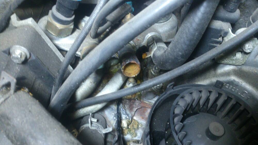 The second leak was located at the Coolant Header Tank, small upper stem... This part was simply replaced, by old stock that I had already in my garage...