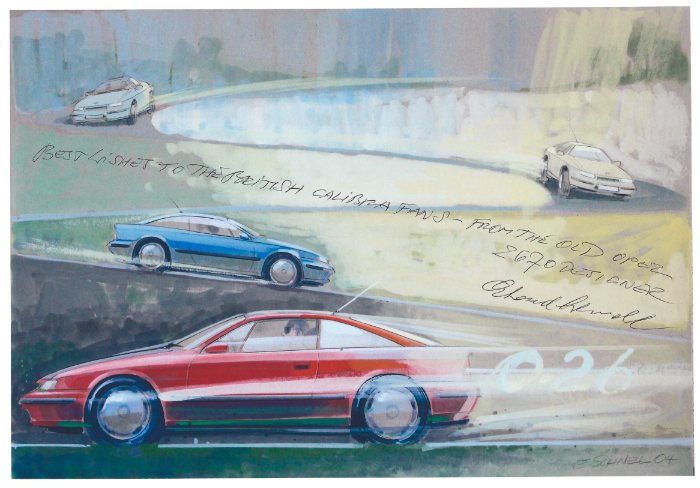 Hi there, I recently received a letter back from Erhard Schnell, the Calibra's designer. I did mention to him about the 25th Anniversary celebration this year that Club Calibra are holding. He sent to me personally a signed illustration with a few words to you all, and a further message I just wanted to share.