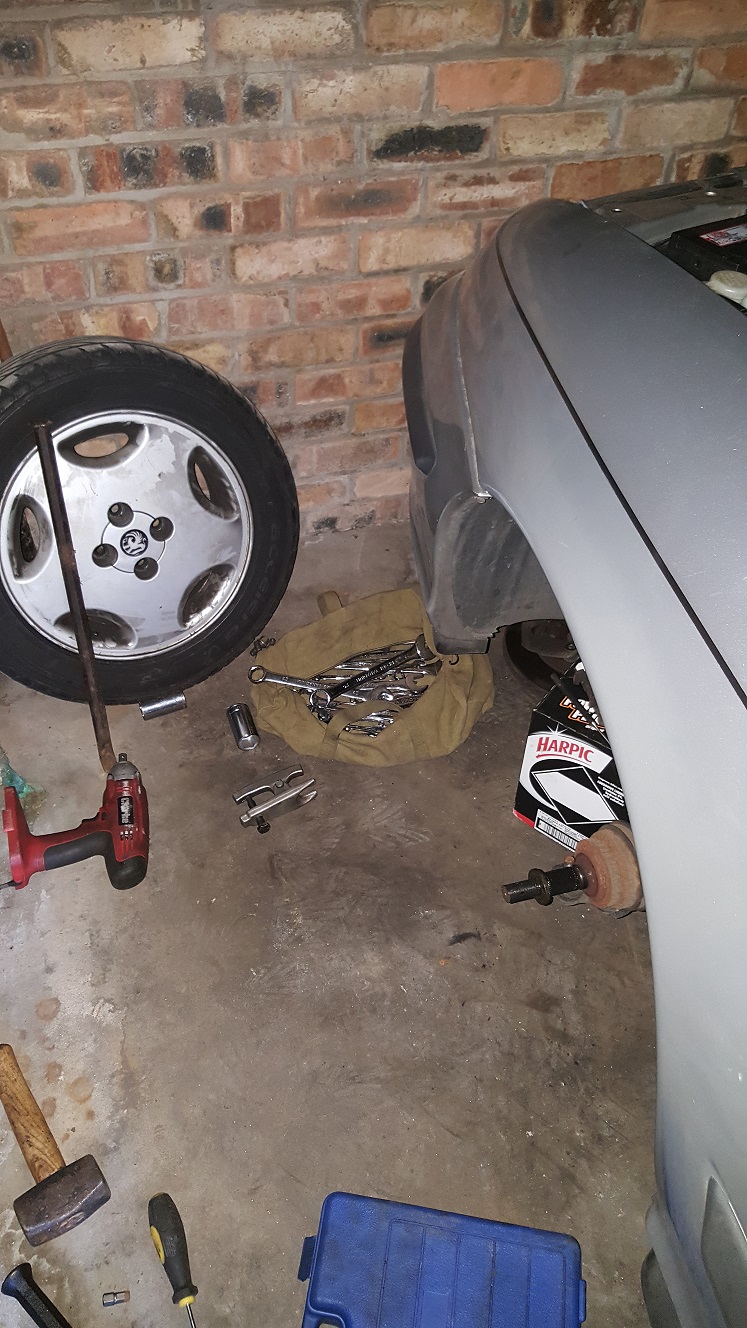I hate bad weather lol forcing me to work in the garage where space is limted well at least a have the strut off and all the parts i need ordered so hopefully by the end of the week that job will be done only 10 more jobs to go lol at least with having my 406 now the calibra's mileage will go from 400 miles per week to around 50 lol weekend use from now on