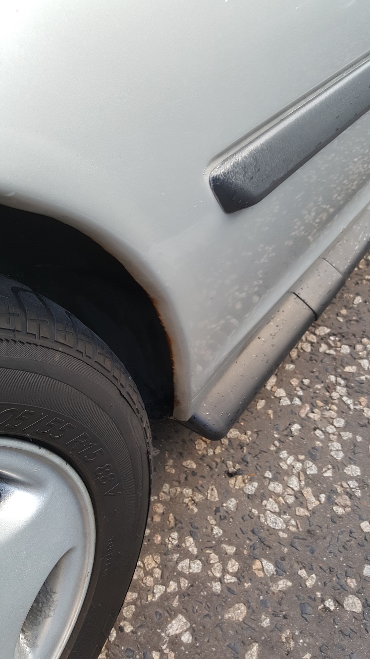 Thought i would start a wee project thread for my silver calibra so i can add pictures and details as i tackle the many jobs that need done. Right 1st job starting to tackle the tin worm which has set in over the winter months so far on inspection it doesn't look to bad but like we all know start digging and it can soon get out of hand.The 1st problem here is the previous owner has had the car painted at some point well the bottom half so the car now sports a two tone paint job star silver up top and what ever silver they used to paint the bottom with a very 90's black pin strip which the painter kindly lacquered over thank you very much so these touch ups might take a while to short out.But i will update as i go