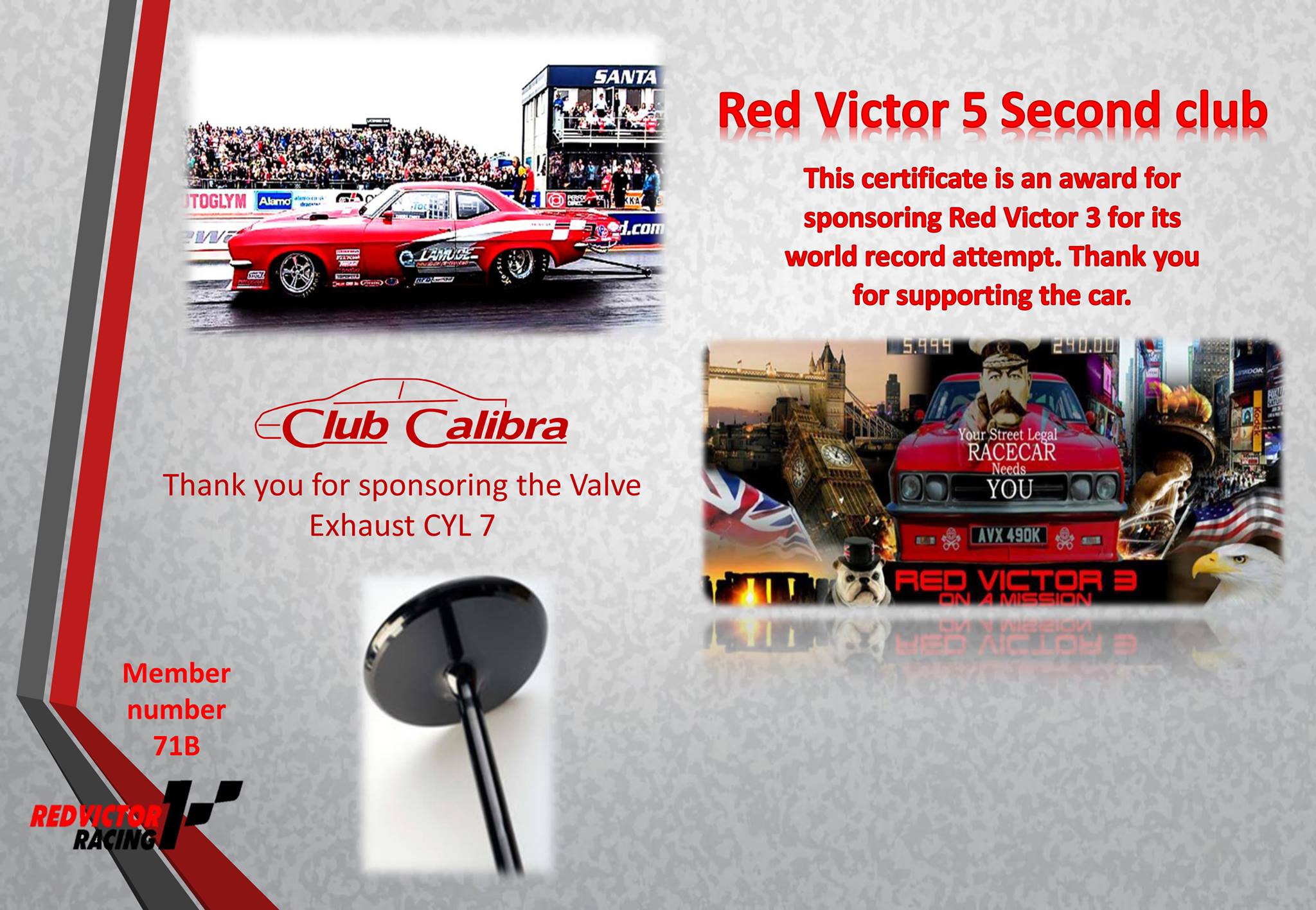 This thread is for the name in gold on the spolier/founder members of the 5 second club/listed as sponsors on redvictor website.