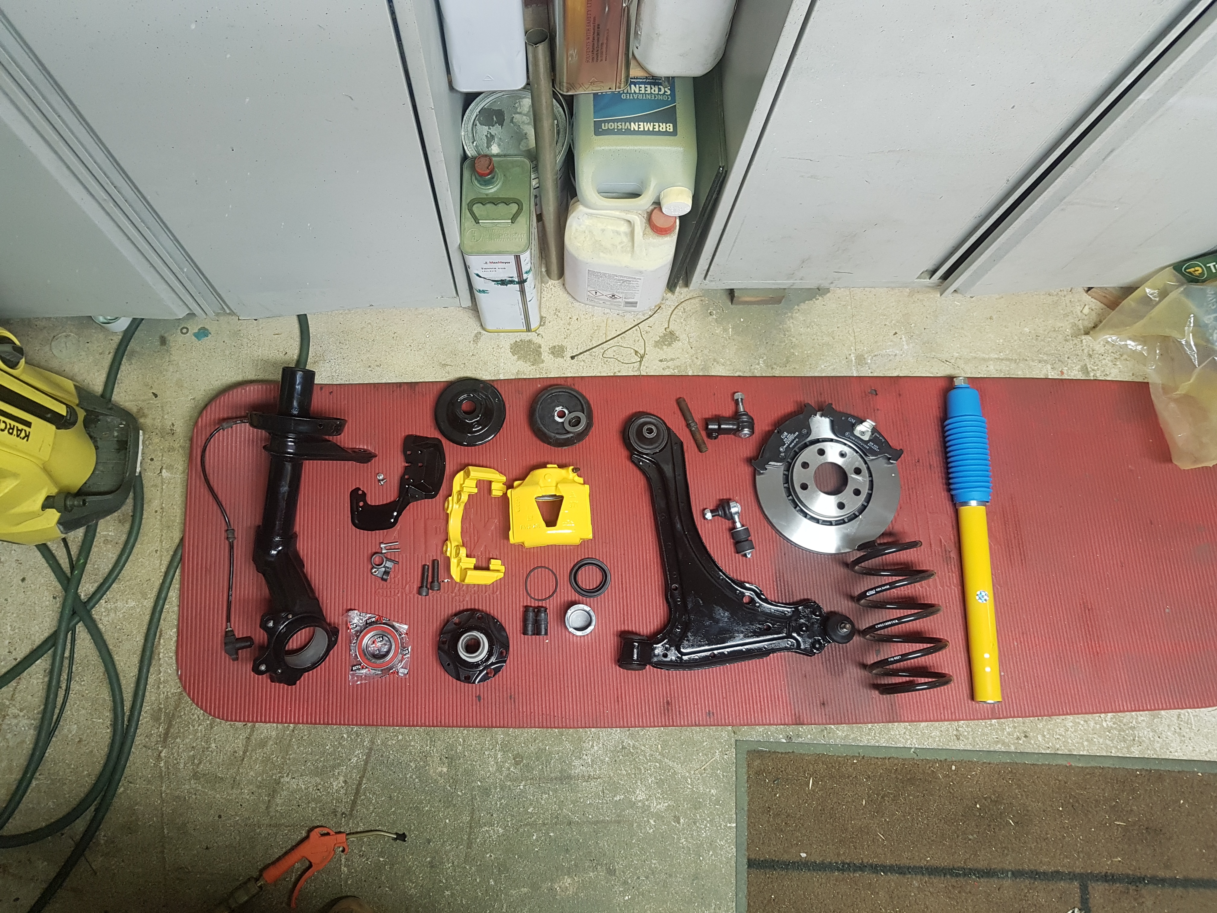 Calipers and brackets stripped blastered back painted in yellow